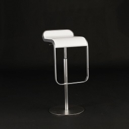 Sgabello. Struttura in tubo d’acciaio verniciato e scocca in laminato. Materiale parzialmente danneggiato!